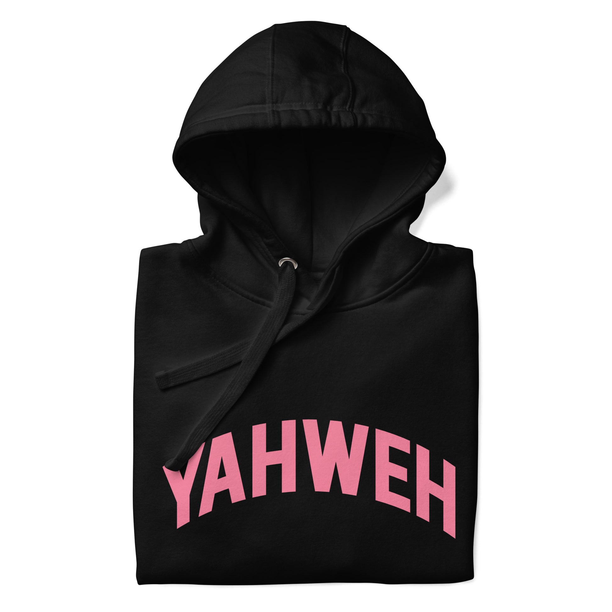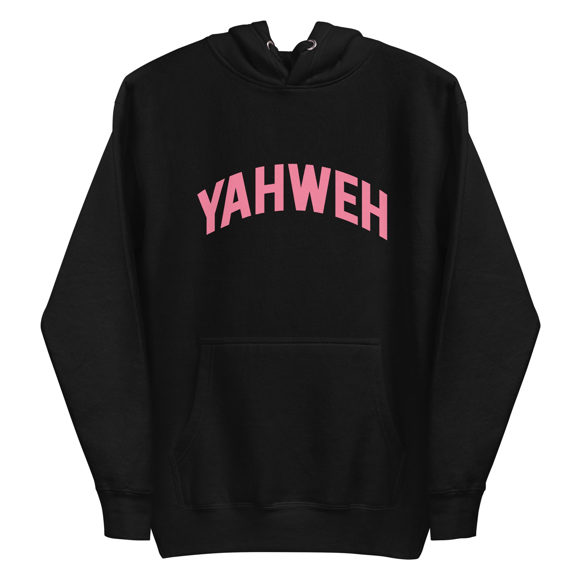 The front of this hoodie proudly displays the captivating word "Yahweh" in pink—a profound term originating from Hebrew, meaning "Lord." Embrace the deeper significance behind this timeless design as it symbolizes devotion and reverence. Let your faith shine through with this remarkable hoodie that effortlessly combines fashion and spirituality.