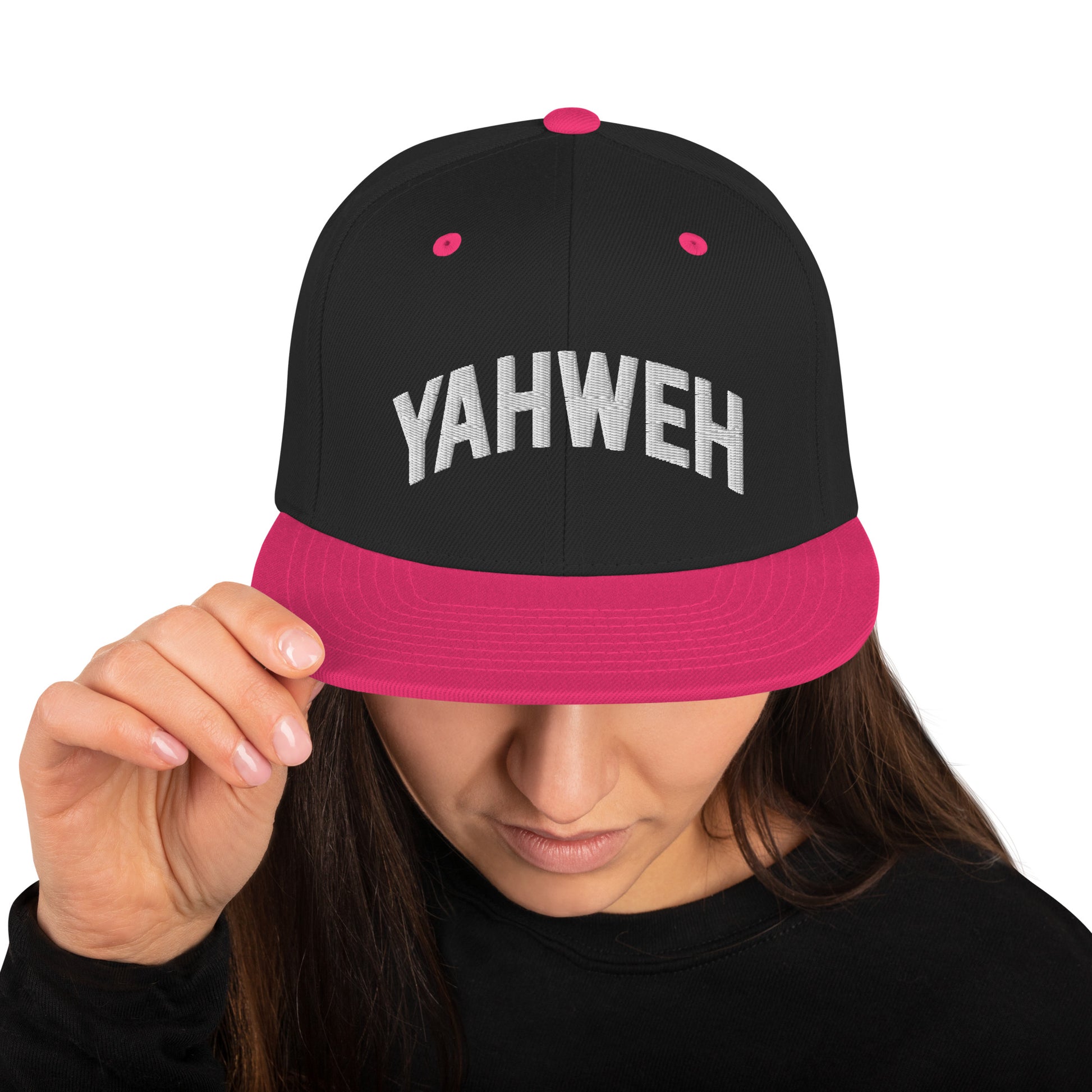The Yahweh Snapback Hat is a timeless addition to your headwear collection. This Christian cap boasts a classic fit, complete with a flat brim and full buckram construction, ensuring its structured shape remains intact. With an adjustable snap closure, this one-size-fits-most hat offers unparalleled comfort.